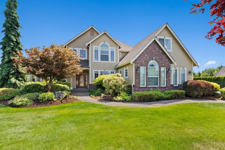 Spectacular Mountain Views . Welcome to this beautiful home complete with a den and spacious bonus room—perfect for remote work, hobbies, or hosting guests. Nestled on a large private lot with mature landscaping and fruit trees, this property offers the perfect balance of relaxation and outdoor enjoyment. Home features automatic whole house generator. Inside, you'll find custom millwork, built-in cabinetry, and accent lighting that enhances the home’s warmth & feel. The oversized garage features a dedicated workspace, ideal for DIY projects or extra storage. Breathtaking views of the Olympic Mountains, Mt. Rainier, and Mt. St. Helens. Experience the best of Northwest living—privacy, comfort, and unforgettable vistas, all in one exceptional home.