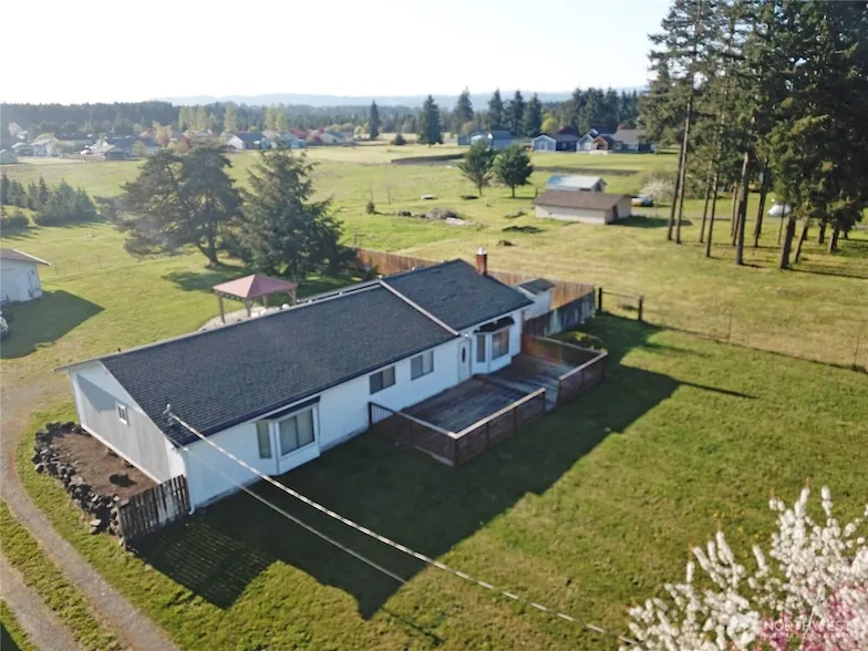 Pleasant Country setting between Rochester & Grand Mound. 1880 sq. ft. 3 bdrm/2 bath home set far off the street on a very useable acre+. Bountiful supply of fresh, cold well water for household/gardens/pets. Forced air/heatpump for winter warmth/summer AC. Decorative, energy saving wood stove, riverstone hearth adornment. Spacious living, tall vaulted ceilings. Gazebo covered outdoor entertaining/BBQ/firepit area. Hottub. Lots of offstreet parking and detached garage/workshop. Updated electrical. Fresh carpets in some of the bedrms. Property fenced and well drained. No flooding or wetland issues. New septic tank just installed. Walking distance to school sports fields. EZ commute to Olympia/Centralia. Good value, good area.