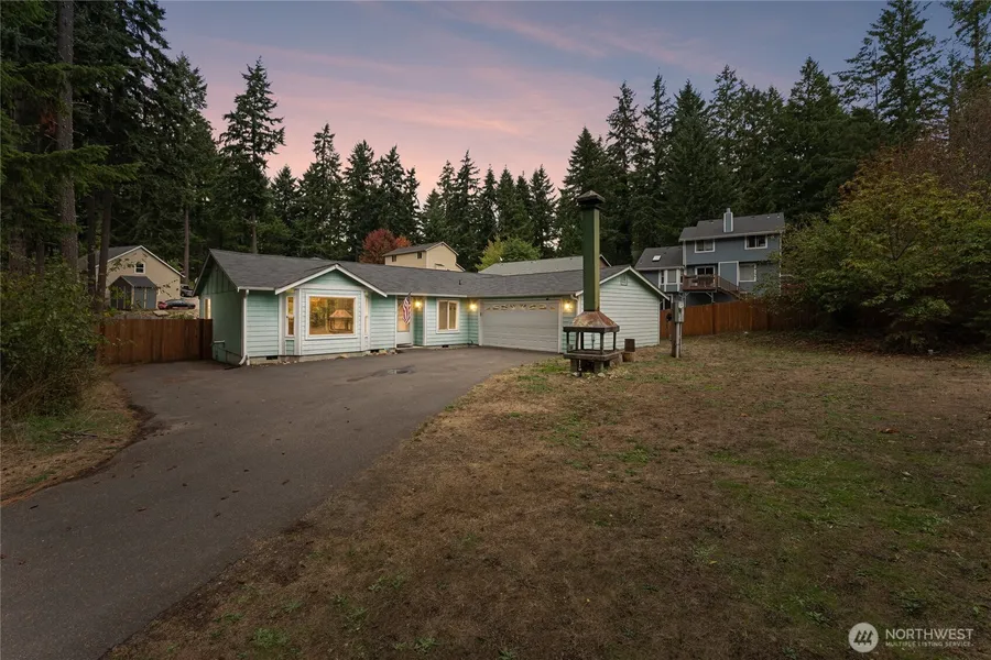 Welcomed by a private extended driveway at the helm of a cul-de-sac and greeted w/ ample parking, a 30-amp power and water RV stub, along w/ a large firepit, this spacious 3-bed/2-bath, 1,729 Rambler is sure to impress. Maximize the spatial efficiency in this open concept gem w/ vaulted ceilings, LVP flooring, natural lighting, and a grand primary bathroom suite w/ a deep walk-in closet. Indulge in the privacy of your fully fenced backyard starting on a freshly painted deck, perfect for gatherings while the dogs run freely. Clearwood's amenities include 3-lakes for fishing, swimming, and boating, walking trails, parks w/ covered BBQ awnings, boat launches, and a community center w/ a private in-ground pool and hot tub. Don't Miss Out!