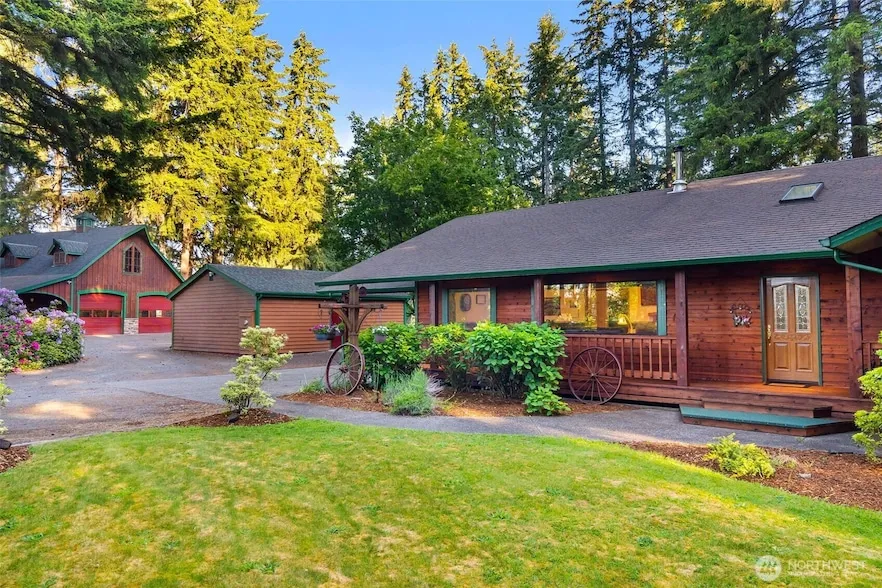 Park-like retreat features majestic fir trees surrounding this cedar sided beauty. 4+ bedrms, 2.5 baths + dedicated office and bonus rm. Cozy, bright home wi great kitchen workspace, center Island. High-quality insulation package, efficient heat pump + warm wood heat for those crisp NW evenings. Need space to work or create? Executive-quality office in a fully finished, heated workshop wi gorgeous knotty pine int walls. Ideal for remote work/small business. 6 acres ideal for yard games, pets, livestock. Entertain guests wi BBQs under the covered rec pavilion wi built-in firepit and decorative stamped concrete. Greenhouse/2stall barn/ Plentiful fresh water for irrigation and separate irrigation zones. EZ commute to Olympia or I-5 at Exit 88.