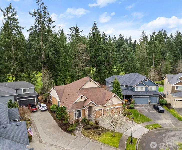 One level living on The Woodlands golf course! Lovely rambler offers over 2700 sq ft, 3 bedrooms, 3.5 baths + den/office. Wonderful open design, extensive hardwood flooring, large vaulted, great room with gas fireplace and built-in cabinets for entertainment equipment. Stunning kitchen with granite counters, rich wood cabinets, gas range, double ovens & big butler's pantry offering more counter space and cabinet storage in addition to large walk-in pantry. Ample formal dining room as well as kitchen eating area. Access to charming patio from kitchen & primary with extensive patio space, low maintenance landscape & golf course views. Large primary with coiffured ceilings, luxury 5-piece bath with walk-in shower, soaking tub & dual vanities + generous walk-in closet. Big additional bedrooms each feature private baths. Central office/den area off great rm with built-in bookshelves. Powder room & large laundry with sink & lots of storage space (washer and dryer included). Blinds throughout, AC, exterior features stone & shake accents, 3 car garage with work benches.