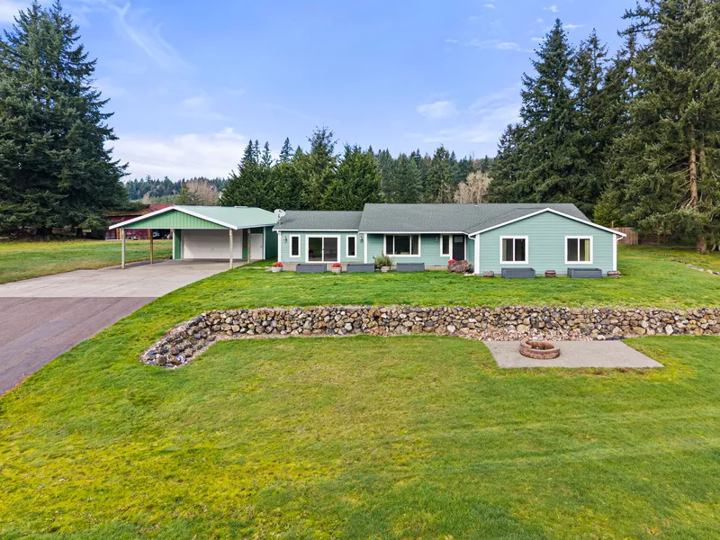Set on a peaceful 6.75+/- acres of beautiful land, this well-maintained and refreshed home offers flexible living with 3-bedrooms and an additional room ideal for a home office, gym, or guest space. New paint inside and out and fresh flooring adds a modern touch throughout, while two separate living spaces and the open kitchen with walk-in pantry provides plenty of room to relax or entertain. The primary bedroom features its own private full bath, complemented by a second spacious full bathroom for guests or household use. Outside, the property truly shines with multiple fenced pastures and a detached shop/garage with an additional covered parking area - perfect for all your adventures. Enjoy the space and privacy of rural living with room to grow, and convenient access to I-5 and town.