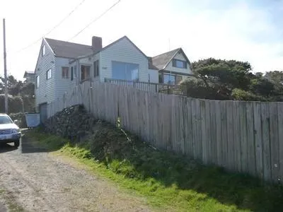Excellent opportunity to own an ocean and Lake Lytle view home on the west side of Hwy 101 with great beach access and vacation rental potential. Centrally located. Detached 2-car garage plus full basement for 3rd car stall and/or workshop/storage. Nice, gently sloping front lawn is completely fenced and has garden area. Awesome price for the location.