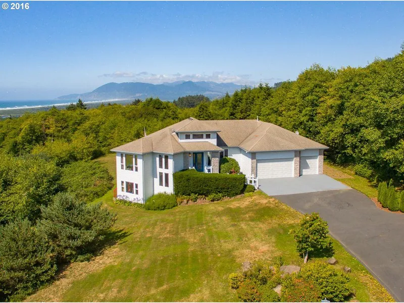 Gracious & welcoming home is meticulous in its design details. From the sunset-hued slate-floor foyer w/its 18' ceiling to the formal living room crying out for a baby grand, to the formal dining room, kitchen w/cooking island & great room warmed by the structured-rock fireplace, this home has an elegant flow. Sweeping ocean view showcased by wall-to-wall windows & covered/open deck, and Much more!