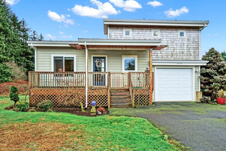 Get back to nature in this contemporary beach house, bordered by the Kilchis Point Reserve and views of Tillamook Bay. The open floor plan offers a generous space for entertaining and family gatherings. The kitchen is complete with granite counter tops, counter seating and dining area. The primary bedroom, framed by a large picturesque window, an ensuite full bath and a secret bonus room beyond the closet. The second bedroom, conveniently located on the first level, offers privacy and main floor living. Enjoy bird and storm watching or the gorgeous Oregon sunsets from the large deck, equipped with an automated awning and Swim Spa. Located on a dead end street with a trail to the Bay and access to the Kilchis trail system.