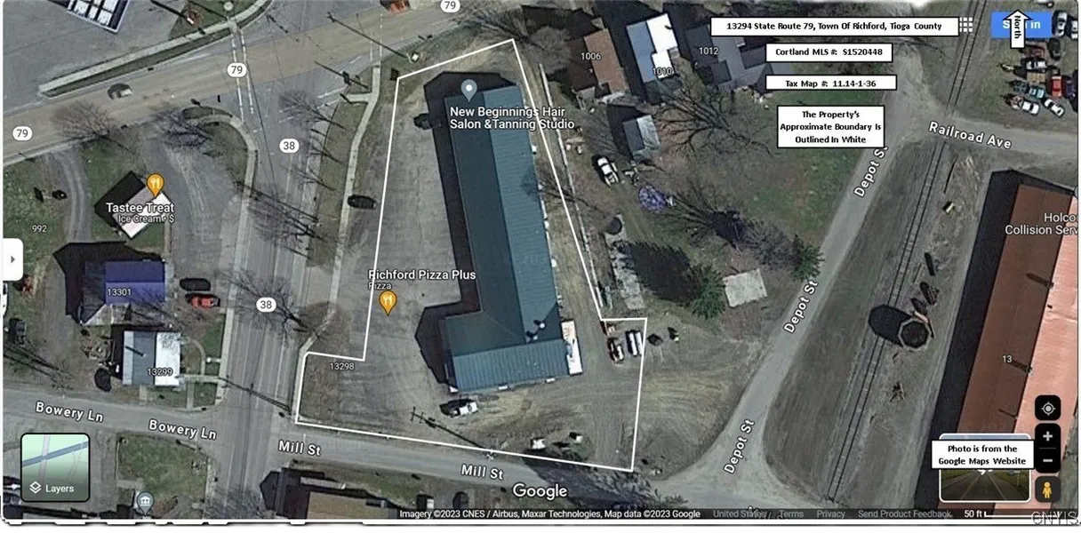 A complete shopping plaza at the intersection of two major State highways, 38 and 79. Its primary tenant is a restaurant with a beer and wine license. It has a 3-phase generator to provide electricity during power outages. The plaza also has the following rental store fronts business (monthly rents are in parentheses): tattoo parlor ($700), hair salon ($700), thrift store ($1,000), and a vacant storefront ($700 when rented). Tenants pay for their electricity. Plenty of on-site parking. NOTE: The whole property is owned by the owner of the restaurant. That owner is willing to continue his business by renting the restaurant from the new owner of the property for $1,500 per month. Potential rent for all of the store fronts is $4,600 per month. The Richford Town Hall and Town Court are located nearby.