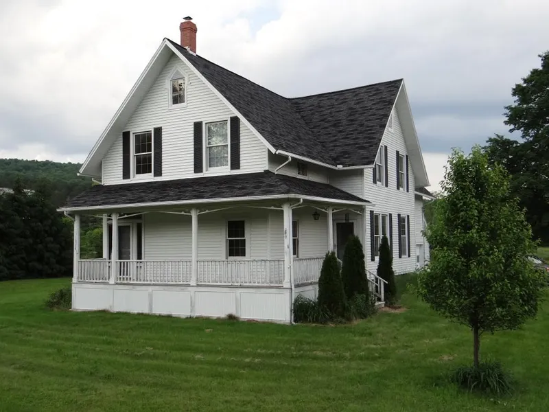 Known as the J.B. Royce house and farm complex, this property includes a Greek Revival house built in 1829 with a Gothic front porch added around 1850 and is listed on the National Register of Historic Places.