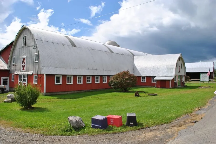 Located on busy Route 96 offering quality land with buildings. There are two large barns totaling over 10,000 sft of floor space with the largest having a retail outlet for farm produce. The residential house that is included has 1,200 sft with 3 bedrooms and one bathroom on a full basement and is currently rented. There are also two trailer sites with elect...