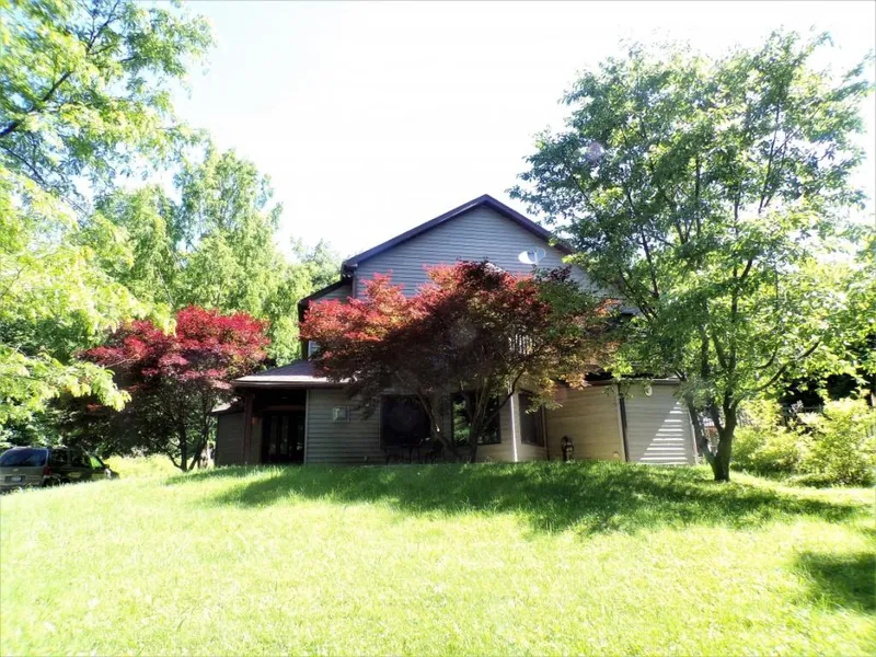 Long, wooded, private driveway leads to a secluded oasis. Updated with high end finishes, granite and stainless kitchen with a unique glass bar top that illuminates. High ceilings, large windows, natural light, open layout. Tile floors on first floor, cork floors in bedrooms all kept warm with radiant heat. Accents of river rock, and stone. Tiki bar poolside. Tree top veranda off master bedroom