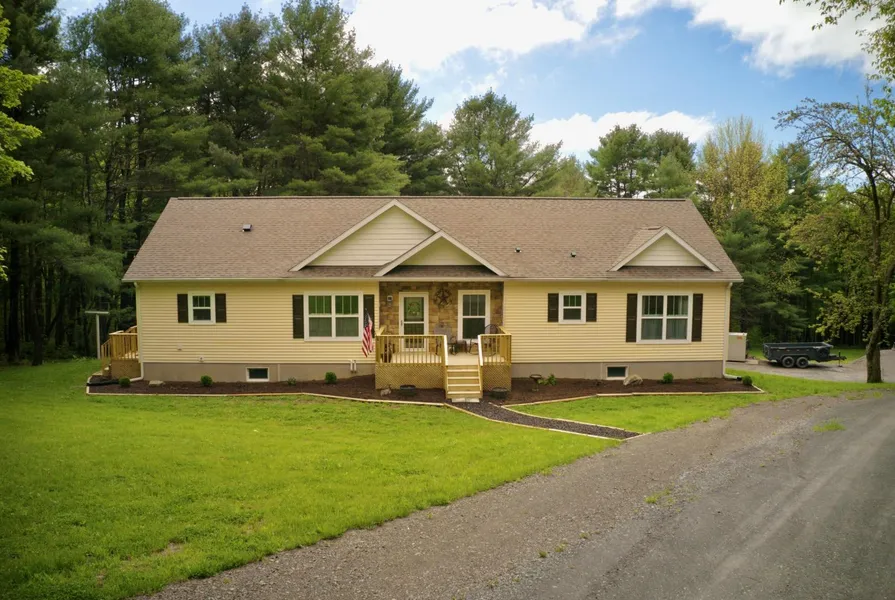 Nestled in a serene countryside setting, this stunning ranch-style home, built in 2022, offers the perfect blend of modern amenities and tranquil living. Spanning over 20 acres of mostly wooded land, the property ensures ultimate privacy with its private drive. The home features 3 spacious bedrooms and 2 modern bathrooms, making it ideal for both relaxation and entertaining. A large pole barn provides ample storage or workspace for various projects. Whether you're looking to enjoy the peaceful surroundings or engage in outdoor activities, this property has it all. Embrace country living at its finest.