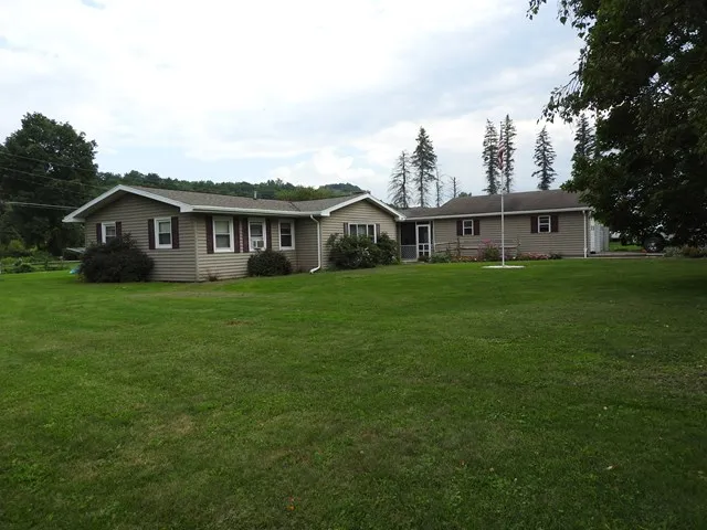 Rancher with Beautiful Landscaped Lot! Home features large living room with stone fireplace, formal dining room, eat-in kitchen, and 4 bedrooms. Exterior has oversized 2 car attached garage, above ground swimming pool and a patio/deck area for all your outdoor entertaining.
