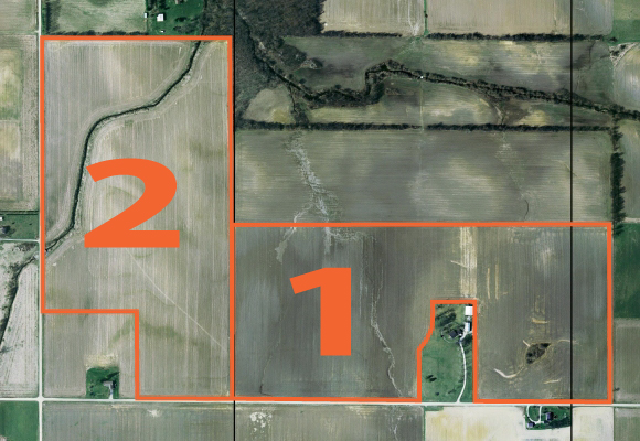 Tract 1: 74.5 Acres (73.9 tillable) - acreage is contingent upon approval by the Area Plan Commission.