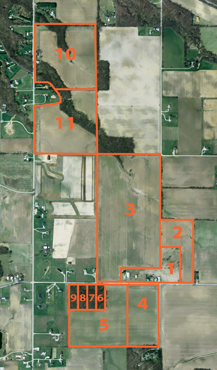 LOCATION: Southeast of Dayton and southwest of SR 38. Tracts 1-9 are on both sides of CR 500 S approximately .2 mile east of CR 900 E. Tracts 10-11 are on the east side of 900 E approximately .5 mile north of CR 500 S.