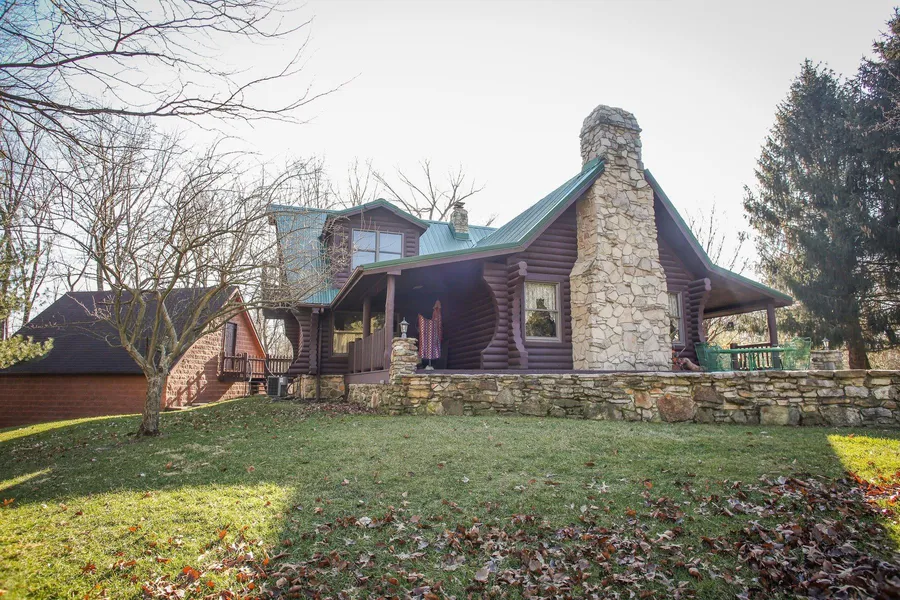 - 10.01 acres along The Wildcat Creek - 4 bed 3 baths - Custom log home with finished walk-out basement - Iron gated entry & gorgeous tree-lined lane - Nature haven - Large detached garage with loft - Additional pole barn - Prime location & schools