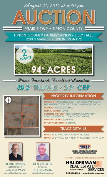 Auction Location (Link): Tipton County Fairgrounds - Lilly Hall: 1200 S Main Street, Tipton, IN 46072