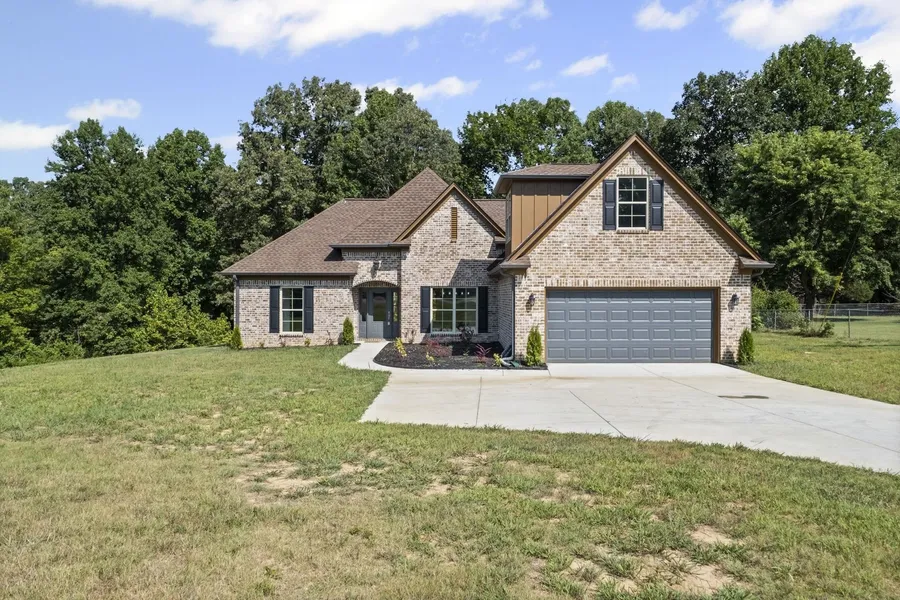 SELLER OFFERING $10,000 TOWARDS BUYER CLOSING COSTS WITH FULL PRICE OFFER! Brand-new construction in Tipton County, just minutes from Brighton and no city taxes! Sitting on 1.3 acres with shared pond access, this 3 BR, 2 BA home has the space and features you’ve been looking for. The split bedroom layout gives privacy with the primary suite on one side and 2 bedrooms + guest bath on the other. Upstairs bonus room is perfect for an office, playroom, or media space. Enjoy both a great room and a hearth room—each with its own cozy fireplace! The primary retreat offers a spa-like bath with a garden tub, king spa shower, double granite vanities, and a huge walk-in closet.