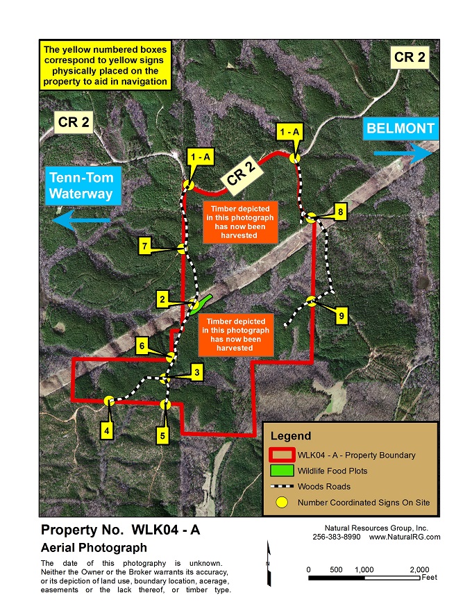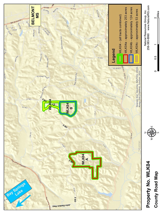 The property has been part of a very well managed timberland operation and has a history of high productivity. The +/- 2,250 ft. of paved county road access and productive well drained soils make an excellent property on which to grow high quality timber that can be logged in wet weather conditions. The current timber harvest is almost complete. All merchantable timber is being cut, but timber in any stream zones will remain. The property will be ready for the new landowner to plant next year. The topography and the paved county road frontage creates the possibility of multiple building sites. Healthy populations of whitetail deer and wild turkey thrive on this property. Boat ramps at BAY SPRINGS LAKE and SAUCER POOL (both lakes on the Tennessee Tombigbee Waterway) are just a few minutes away. In less than 10 minutes you can be on either of these clean lakes enjoying a day of fishing and/or watersports. Need to go to town? BELMONT, MS, a charming town with shopping and dining and is only 5-10 minutes away.
