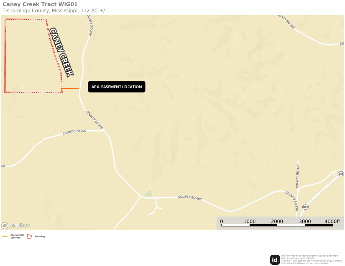 From the intersection of CR 300 & CR 298, drive north on CR 298 0.3 mi. and the gate on the left is the estimated start of the road that the easement follows.