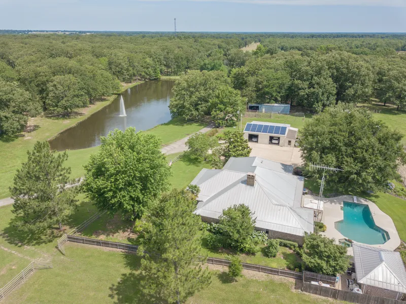 Don't miss you chance to own a beautiful spot in Northeast Texas. Pay attention to details. This property has so much to offer and is well maintained and manicured. Property has 156.915 acres with 5 ponds, large main house with 3364 sq.ft., 800 sq.ft. log cabin, 800 sq.ft. bunk house, work barn, greenhouse, 200 sq.ft. office, solar panels, 3 deep wells, zip line, tree house, entertainment deck and garden area. Home is completely self sufficient with solar panels,battery, generator and deep wells. Land is ready for cattle with great fencing and grass. If you are looking for beautiful landscape or a working operation this excellent property is a rare find.