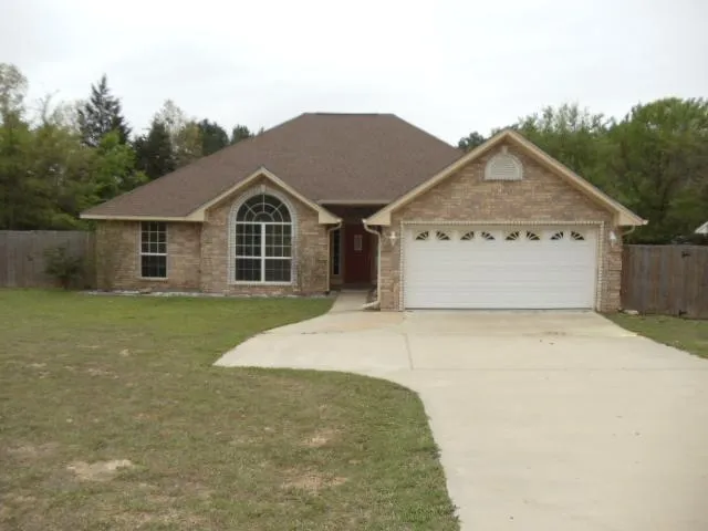 GREAT PRICE FOR THIS 3/2/2 BRICK HOME BUILT IN 2006 WITH 1613 SQ FT ON A 0.5 WOOD PRIVACY FENCED BACK YARD LOCATED ON A CORNER LOT. LARGE OPEN LIVING ROOM WITH A GAS LOG FP THAT FLOWS INTO THE DINING ROOM AND KITCHEN. KITCHEN HAS ALL THE APPLIANCES INCLUDING A SIDE BY SIDE FRIG, RANGE, BUILT IN MICROWAVE, DISHWASHER DISPOSAL, BAR AND ISLAND. SPLIT MASTER WITH AN UNIQUE BATH THAT IS OPEN AT THE TOP WITH SEPARATE CUSTOM VANITIES, HANDICAPP SHOWER, JETTED TUB, 2 WALK IN CLOSETS AND TILE. FULL MASTER BATH. LAUNDRY ROOM CONVENIENTLY LOCATED BY THE DOUBLE GARAGE. DINING ROOM AND LIVING ROOM BOTH OPEN ONTO A COVERED PATIO WHERE YOU CAN SIT IN PRIVACY ENJOYING THE BEAUTIFUL EAST TEXAS MORNINGS. GREAT BUY, PRICED BELOW TAX APPRAISAL VALUE.