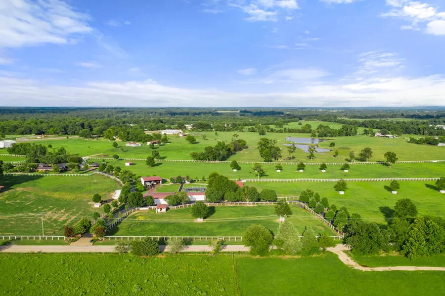 Ranching dreams are made of this! This magnificent property features a gorgeous main house, a one bedroom-1 bath guest house or workers quarters, and a vacation worthy outdoor space boasting a pool, hot tub, and outdoor kitchen. Sitting on over 85 acres with two large ponds, no detail was spared when building the barns and stalls for your 4 legged friends. All barns and shelters were built with cinderblock, rubber brick floors, fly spray systems, metal roofs, and electricity and water. All barns have their own feed-tack rooms and automatic waterers in every stall. A 5 panel horse walker centrally located between barns is also available. Over a mile of stunning white fence surrounds this entire property.