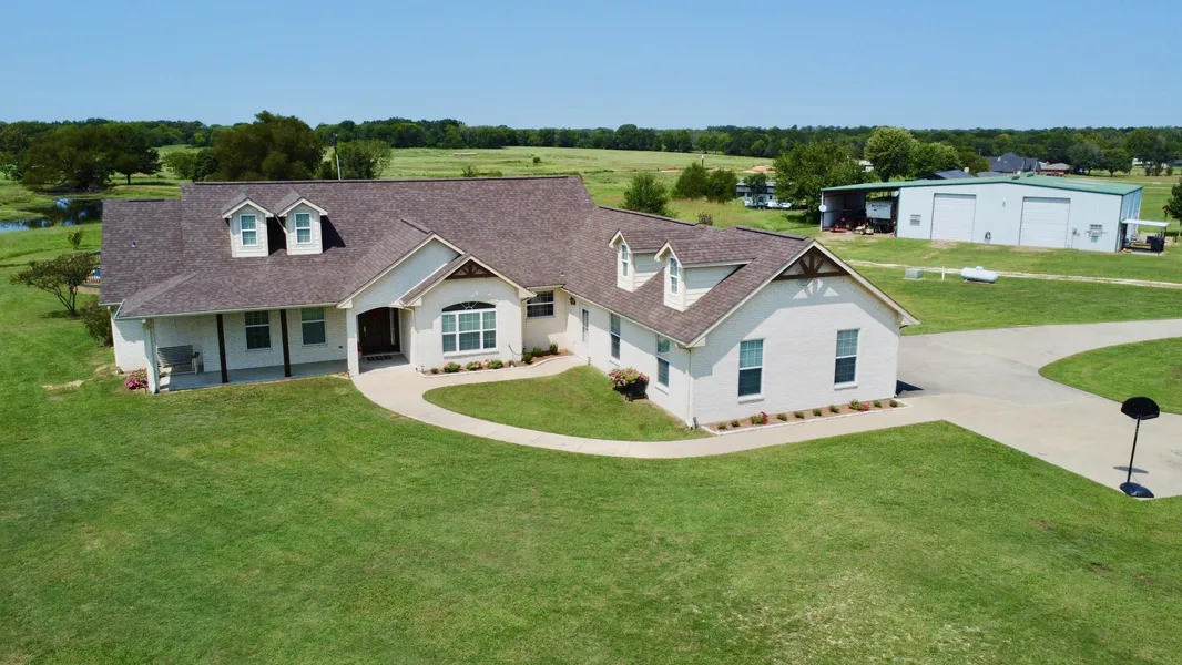 This 14 acre property checks all the boxes you've been looking for. Acreage, check! Beautiful house with a new roof, check! A swimming pool, check! 2,400 sq ft shop with an office and full bathroom, check! A fishing pond with a dock, check! This property has 2,685 sq. ft., 3 bedrooms, 3 bathrooms, an office with built-ins, 2 car garage, a massive laundry/craft room, and a safe room located in the garage. Enjoy swimming out back and enjoy some drinks on the covered patio/cabana that includes a bathroom as well. This home was well thought out when built in 2007, and is very well taken care of. Schedule a showing and check it out for yourself!
