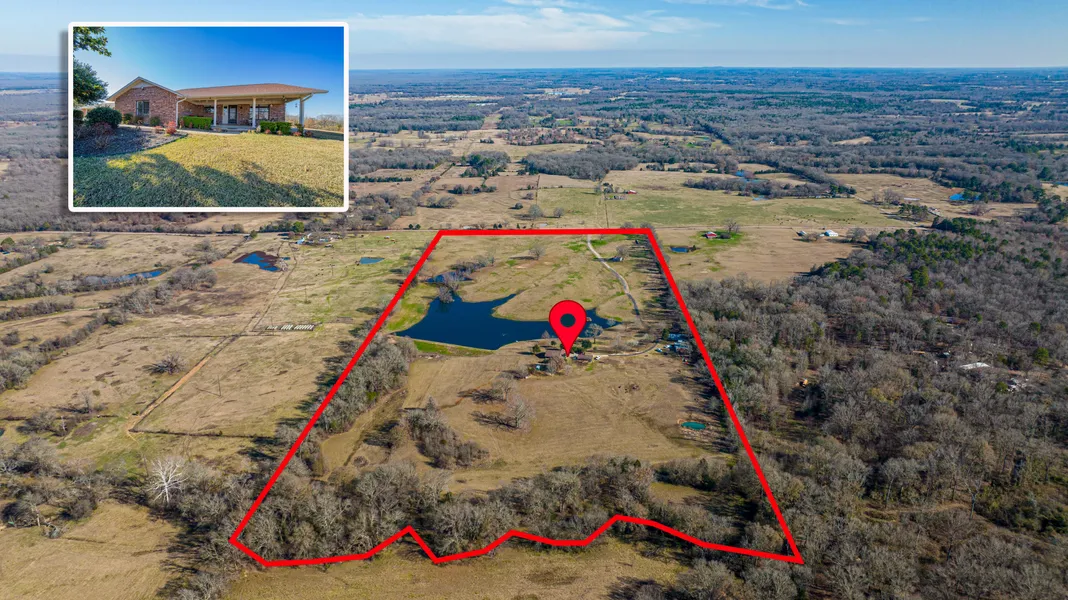 Welcome to this stunning property located at 2849 County Road 3180. This beautiful house is now available for sale and offers a truly unique living experience. With its spacious layout and breathtaking surroundings, this property is sure to impress. Situated on an expansive 54-acres, this open concept house provides plenty of room for comfortable living. The interior features three bedrooms and two bathrooms, ensuring ample space for family and guests. The large private lake on the property adds a touch of tranquility and serves as a picturesque backdrop to your everyday life. As you approach the property, you'll be greeted by rolling hills and a long driveway leading to the house. For added security and convenience,there is a coded gate at the entrance. The entire property is fenced all the way around, providing privacy and peace of mind.In addition to the main house, there are several additional structures that enhance the overall appeal of this property. A metal shop with central air conditioning offers ample storage space or can be utilized for various hobbies or projects. There is also a guest house with central air conditioning and heating which can accommodate visitors or serve as a separate living space, and also there is a detached garage with small living quarters with A/C and heating, providing a versatile space. Located just two hours from Dallas, this property offers a serene escape from the hustle and bustle of city life while still being within reach of urban amenities. The breathtaking views surrounding the house create a sense of peace and tranquility that will make coming home a true joy. Don't miss out on this incredible opportunity to own a piece of paradise. Schedule your viewing today and experience everything this property has to offer!