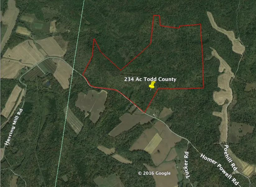 234 Acres located in the heart of monster buck territory on the Todd Co/Christian Co line. Farm is all wooded with good timber. Has large food plots. Good road frontage. County water/electric for cabin or house. Call 270-556-3576.