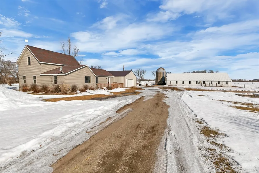 4.6 acres with many out buildings. Remodeled home with new cabinets, flooring and freshly painted. Hobby farm is surrounded by farm land. Home has a large deck off the front. Yard is lightly treed.