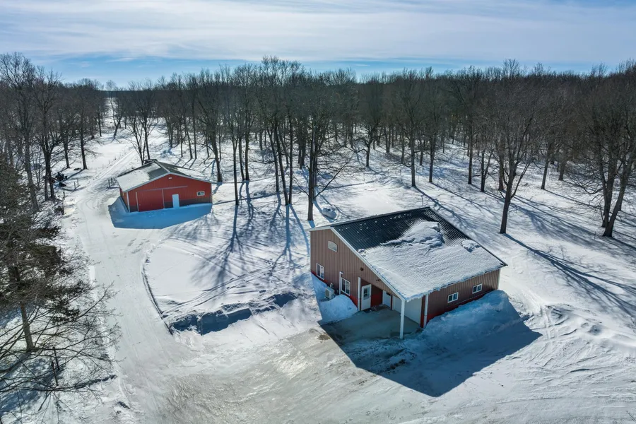 Tranquil country home on 21 partially wooded acres just a short drive from Browerville, Minnesota. Features include two bedrooms, one bath, vaulted ceilings, gas fireplace, hickory cabinets, center island, spacious loft, mini-split, radiant heat, attached heated/insulated garage, 40x40 storage building/shop with cement floor with mature oak, maple and cedar trees.
