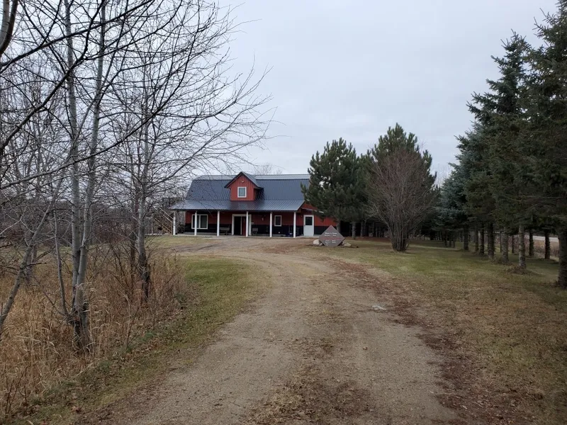 46 Acre ''One of a Kind'' Hunting Retreat! This is the nicest hunting camp you will see! Built in 2012 this year around lodge is the ''Taj Mahal'' of hunting camps. Infloor heat, maintenance free construction throughout, full custom kitchen, open floor plan with fireplace for easy entertaining. Main floor bath and laundry. Special 11x27 hunters gear room and bunk area with much cabinetry and storage with it's own entrance. Upper level has 2 bedrooms and bath with large bunk area. Both levels have walkout to large patio and deck with scenic views of the beautiful Ponderosa like setting. Same quality and care has been put into the 46 acres, food plots, trails, 6 deer stands that stay with the property, this is a nice mixture of hardwoods, poplar, conifers and good cover lowlands. Many deer trails, rubs and scrapes. Located in an area of high quality white tail bucks. Many more perks with this include 8x20 storage shed, dog kennel run for the upland and duck hunters, paver outdoor fire pit and much more. Approximately 1200 square feet finished on main level.
