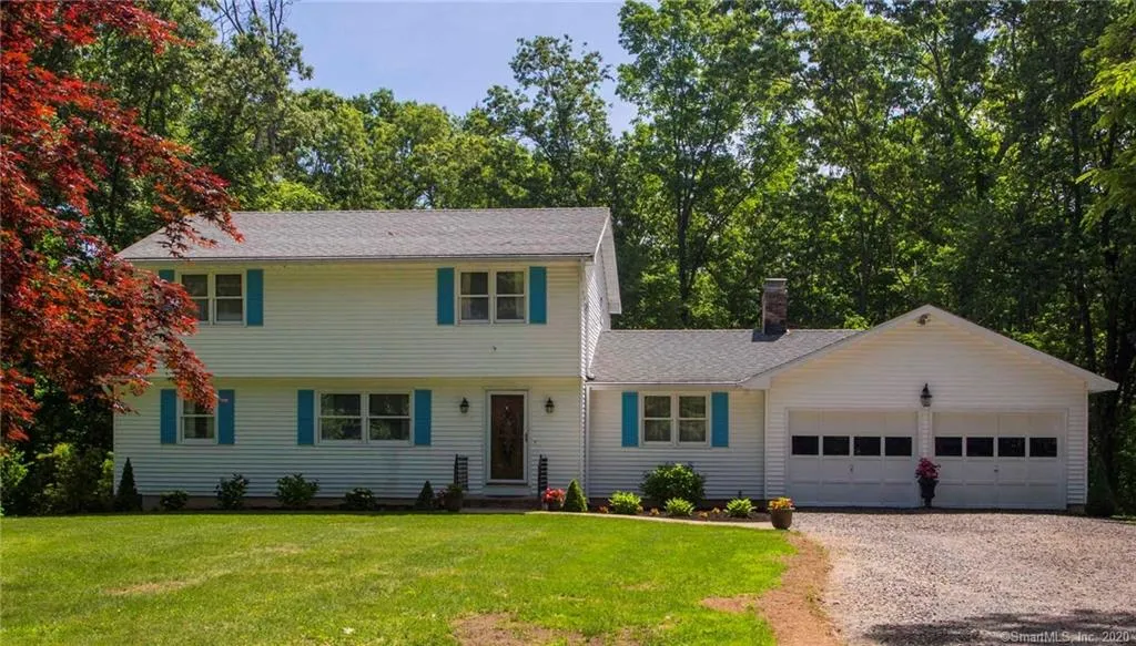 Enjoy the privacy and serenity of 2.41 wooded acres with this spacious, move in ready 3 bedroom Colonial. This home is conveniently located in an area that still has that quaint small town feel, yet close to all the amenities and an easy commute to downtown Hartford or UCONN. This lovingly cared for, one owner home has 3 bedrooms, 2.5 baths, and gorgeous hardwood floors throughout. The large country kitchen was remodeled in 2011 with new cabinets, granite counters and offers large bow window that allows views of the wooded backyard and flower garden. Off the kitchen is a formal dining room and lovely sitting room. The family room and light filled sunroom are connected by a set of French doors that allow the space to be opened for large gatherings. The master bedroom contains an on-suite bath and walk in closet and can easily accommodate a king size bed. The rest of the second floor offer...