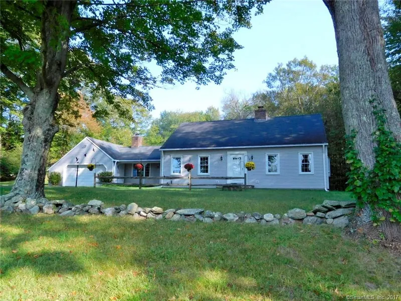 Come see this beautiful custom 3 bedroom, 2 full bath Somers Cape built by Buck Builders. The 0.99 acre picturesque property is surrounded by town-owned open space which was formerly Camp Ayapo. There is a lovely view across the street to the east and old stone walls which give character and charm to the yard. This home is in move-in condition! Features include refinished wood floors, freshly painted walls and trim, solid 6-panel doors, first floor family room, 2 fireplaces, covered porch, a 2 car garage with pull down stairs to storage and large shed attached to the back of the garage. Many updates include replacement windows, vinyl siding, newer multi-zone boiler, 330 gallon fuel oil tank, new electrical outlets and covers and new solid surface counters in both bathrooms. The large bay window in the living room brings the outdoors in. The first floor bedroom could be used as an office....