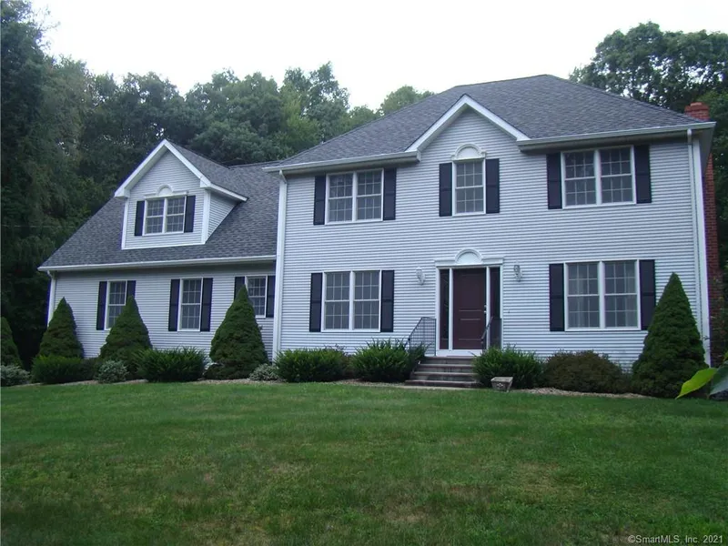 This picturesque 4-bdrm colonial sits at the end of a 4-house subdivision. As you enter the front entryway, you are taken in by the open floor plan. Straight through the front hallway is the kitchen which offers an abundance of cabinet space, stainless steel appliances, granite countertops and newly installed tile floor. Step down into the front to back living room with gleaming hardwood floors, a stone, floor to ceiling, fireplace with hearth and recessed lighting. The radiant sunroom with sky lights, ceiling fan, windows galore and slider out to the surrounding deck and private back yard is sure to be the focal point of the home. When you walk into the entryway from the large, over-sized garage, there is a closet and laundry/mud room with sink and overhead cabinets, as well as a newly finished half bath. The 2nd level, huge master bedroom suite offers a double sink vanity, shower stall and breathtaking step-up garden jacuzzi tub. All bedrooms have walk-in closets. The lower level features a media room, study/office and rec room. The furnace room has a work bench, two oil tanks and room for storage. This home has a lot to offer and is easy access to I84, 15 minutes to UConn and Hartford.
