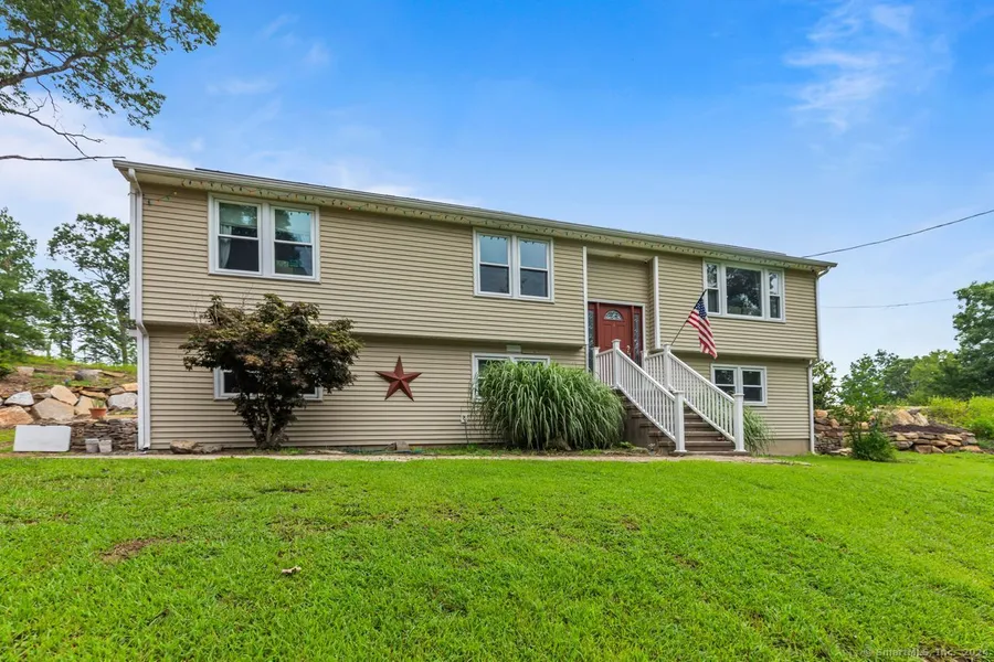 This charming raised ranch offers an expansive living experience on approximately 1.06 acres with a private front yard and brand new retaining wall in the back. The home features three bedrooms, two and a half bathrooms, and a spacious finished basement. The primary bedroom is a retreat; highlighted by a beautifully renovated en-suite bathroom, boasting tiled walls and modern fixtures for a spa-like feel. The additional two bedrooms and main bath offer plenty of space. The kitchen features brand new, wood-look tile floor, ample cabinetry, and is open to the large dining room, which connects back into the living room with large picture window. Abundant lighting creates a bright ambiance throughout the home. The open layout facilitates easy movement and a sense of flow, perfect for entertaining or daily living. The finished basement adds to the living space offering additional versatility, a workshop off the garage, and plenty of storage space. Save money on utilities thanks to the large wood stove, which heats the entire house, and the leased solar panels. The lot provides abundant outdoor space for relaxation or recreation. The retaining wall has solar lights throughout and was installed this year. The owners also built a new firewood shed, with metal roof and gutters, about two months ago as well as flattened the side yard for more usable space.