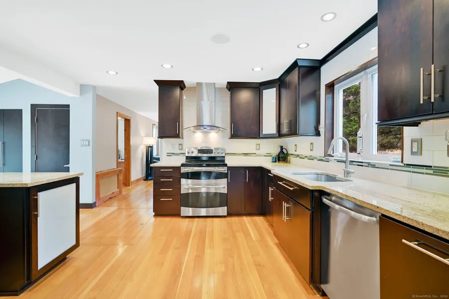 Pride of Ownership! This charming, custom and unique home offers one level living at its best with a versatile and interesting floor plan. Well maintained and nicely updated thru out the years the large, open and beautifully remodeled kitchen is the focal point of this home offering a separate breakfast bar/island, granite countertops, heated wood flooring, subway tile backsplash with decorative trim, abundance of counter tops, cabinets and storage space, stainless steel appliances, recessed lighting and 2 built-in beer taps w kegerators (located in the bsmnt). Carry the festivities out to the 32x20 deck that overlooks a level, fenced, private back yard and offers an in-home audio system with speakers located in the kitchen, on the front deck and wired for the back deck making this the perfect home for entertaining! Bring your imagination and finishing touches to the heated, 2nd flr stud...