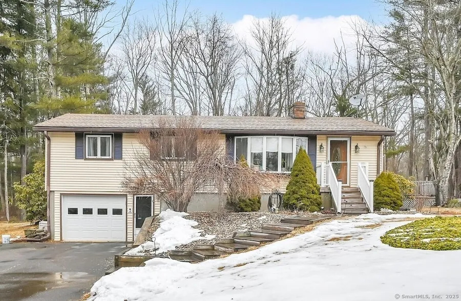 Come check out this beautifully maintained 3 bedroom ranch in Willington! You will love the open floor plan and hardwood floors! Kitchen and bathroom offer tile for easy maintenance. Kitchen has beautiful Silestone countertops, recessed lighting and a convenient breakfast bar. Addition at the back of the home provides extra living room space and ample storage space for all your lawn and garden tools. Brick fire place and separate pellet stove keep you toasty in the winter, while Central air conditioning makes summertime even more enjoyable! An open staircase leads you to the finished basement with full bath, access to garage and separate entrace. Slider in family room leads to your double deck and flat back yard where you will enjoy beautiful perrenial gardens and privacy! Generator hookup. **Offer deadline is Wednesday, March 5, 2025 at 12:00 pm**