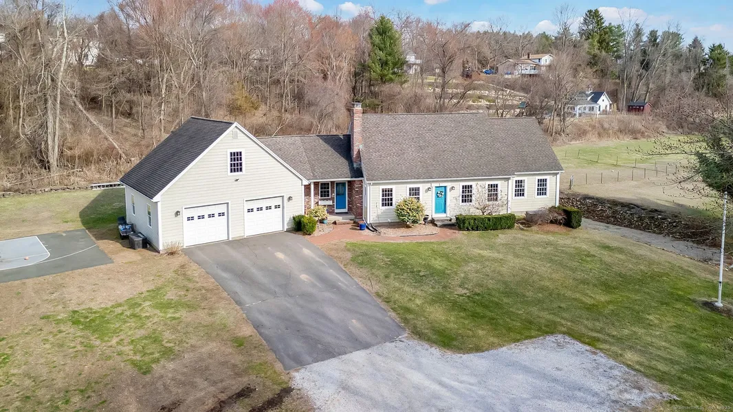 ***HIGHEST & BEST OFFERS BY WEDNESDAY 4/9 at 9AM*** Welcome Home to your stunning, custom-built country retreat situated on nearly 5 acres. The long driveway leads to idyllic, private grounds, while the beautiful exterior and covered porch welcome you and guests into the spacious home with surprises throughout. This well-designed home features an open floor plan with great flow for entertaining and conveniences for every day living. Full of natural light, tall ceilings, hardwood floors and custom millwork, quality fills this move-in ready home. On the main level, the living room has a gas fireplace and dining area that opens to the kitchen with custom cabinetry and flows into the large family room. An office with French doors and shiplap, mudroom, laundry room with full bath plus a primary bedroom suite complete the main level. Upstairs, 2 bedrooms, each with an adjacent extra room, have ample closets. The largest extra room provides great options for finished space. The lower level is a partially finished walk-out with nearly 2000 sq ft. The garage, shed and smart storage throughout provide extensive storage. Stone walls, landscaping, patio, basketball half court and acres of tree-lined property let you enjoy the serene outdoors year round. Private yet conveniently located to shops, restaurants, amenities and major throughways. Don't miss it!