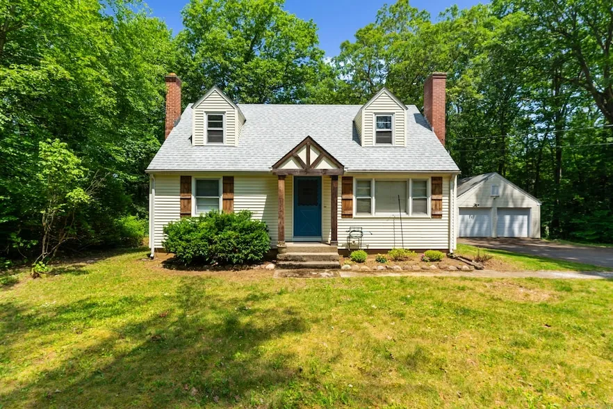 Charming 4-bedroom Cape nestled on 1.9 acres with a spacious, level backyard-perfect for outdoor fun, gardening, or just enjoying the fresh air. A scenic path winds through the trees and leads to tranquil 24-acre Buckley Pond, an ideal spot to relax and watch the ducks and geese drift by. Inside, you'll find a beautifully updated kitchen with granite countertops, and a stylish tile backsplash. Gleaming hardwood floors run throughout the entire home-no mystery carpets here! Cozy up on cool nights beside the wood-burning fireplace in the living room, framed by attractive built-in shelving that blends function with charm. For those who love to tinker, create, or just need extra storage, the detached 2-car garage with walk-up attic space is a huge bonus-perfect for stashing kayaks, fishing gear, or anything you need for nearby Bigelow Hollow State Park, just 3.5 miles away. With over 9,000...