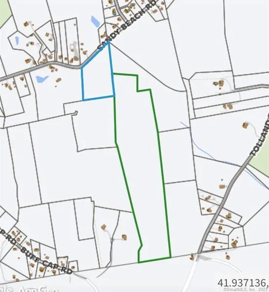 This Property is located on quiet Sandy beach road Ellington CT. very close to Crystal lake town beach. This land has well established tall old growth trees and is currently two lots with a total of 61.60 acres (+) or (-) as pictured outlined in blue and green. For location purpose on the street, it is across from house numbers 37 and 41 with marker signs installed. This property is ready for subdivision and development of residential homes or other purposes like Equestrian or farming. No visible wetlands on property. Total frontage on Sandy beach road is 689 ft. Topography and area wetlands maps available.--- Seller will consider cooperative build and or seller held financing offers. --- Drone tours live on site available