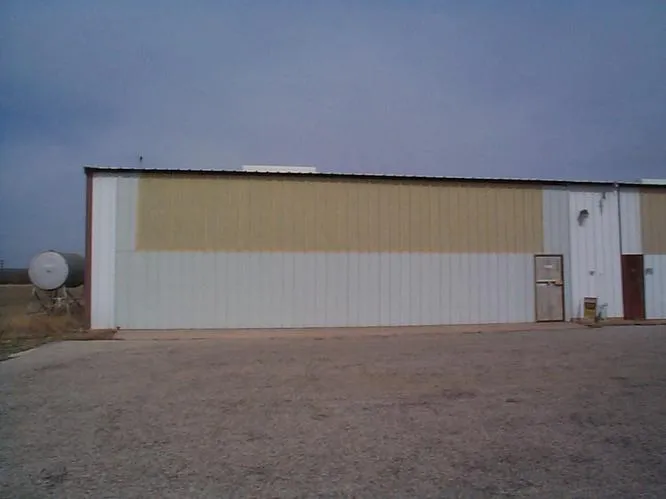 Hangar is well lighted. Includes 550 gal fuel storage system. Inside insulated storage room. Large upright air compressor.