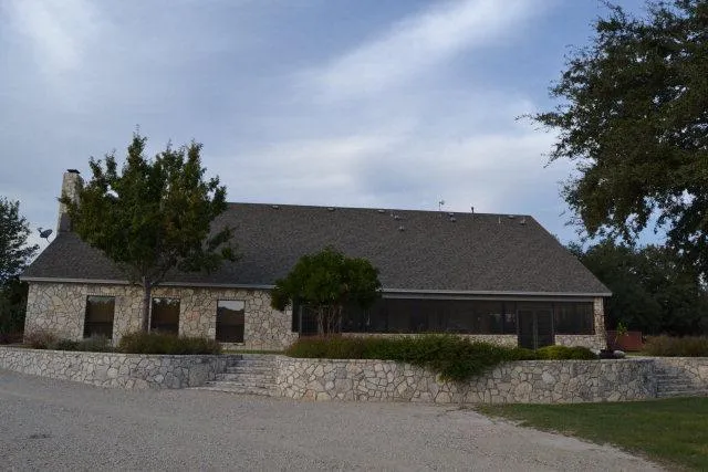 WOW!COUNTRY LIVING AT ITS FINEST!Nestled among beautiful live oaks/rolling hills.You'll feel like you are in the hill country on this 88.86 acre property. Custom home full of mesquite wood, floor to ceiling stone fireplace,gourmet kitchen open to den and breakfast,huge granite bar,office spaces,and a 5,000 barn/workshop with bunk house for guests.Den listed is a screened porch with fireplace.Other is a craft room or office off the master. Theatre room, deer coolers,roping arena!