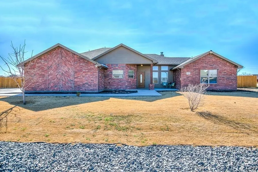 Better Than New in Buffalo Heights Addition! Come and put your personal stamp on this amazing property, Built in 2022, this beautiful family home offers the perfect blend of modern comfort and peaceful country living. Situated on a cleared acre with no through traffic, you'll enjoy privacy, space, and stunning West Texas sunsets from the extended back patio. Inside, the spacious living area features a cozy corner wood-burning fireplace, creating a warm and inviting focal point. The large kitchen is a chef's delight. Relax in your sequestered master suite, creating a private retreat separate from the secondary bedrooms. The home feels fresh and move-in ready, enhanced by tasteful landscaping and pride of ownership throughout. Additional highlights include an owned water softener, window blinds, fenced yard, extra parking, and a storage building for added convenience. Enjoy country living ...