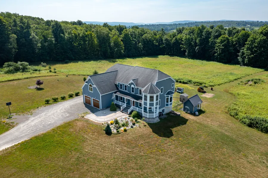Situated on 40 private acres this large custom built home has room to spare inside and out. The grand entrance opens up to two stories of windows overlooking the scenic backyard. Open concept kitchen perfect for entertaining with Jenn Air double ovens , convection oven , and wet bar with refreshment refrigerator. Quartz counters provide tons of workspace. Huge master suite with corner turret sitting room and private access to adjacent bedroom or nursery. Elegant high end finishes and hardwood floors through-out. Composite deck with corner gazebo matching dimensions of the front turret show the attention to detail that went into this property. Radiant floor heat on every floor including basement and garage, and outbuilding. Two Air handlers handle Central AC as well. Over 8 acres of woods for hunting and recreational activities. Viewing the wild life during the day and the fire flies ligh...