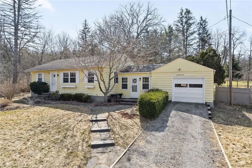 Charming mid-century ranch in Ellis Hollow. Set back from the road on a tree-lined lot, this home offers the perfect blend of original character and thoughtful updates and is located just 2.5 miles from Cornell University and close to shops, amenities, and community trails. Inside, the inviting living and dining area has divided light windows that fill the space with natural light. The hardwood floors and original built-ins nod to the home's mid-century roots. A tastefully updated galley kitchen features stainless steel appliances, including an induction stove, making it both stylish and functional. An additional main level room, with sliding doors that lead to a multi-level deck and fenced backyard, offers a versatile space for a home office, gym, or den. Discover the bonus square footage in the lower-level a family room which provides extra space for relaxing, along with a small office or studio area for work or hobbies, and an updated full bathroom. Storage won't be an issue, with plenty of space, a workbench for projects, and an oversized one-car, attached garage. Outside, the fenced backyard is perfect for pets, while the deep yard beyond offers a treehouse and room to explore. Mature shade trees create a peaceful, private setting. Enjoy the nearby Ellis Hollow Community Center with a pool, community events, and Music in the Hollow , hike on the nearby nature trails, or take an easy bike ride to campus. This is a quality, comfortable home with timeless character in a wonderful location.