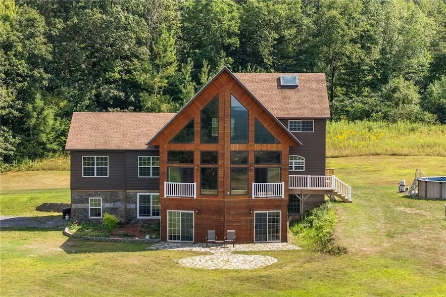 Perched high on 23 rolling acres in the coveted Dryden School District, this one-of-a-kind, three-story custom-built home invites you to live where the sunsets steal the show and the stars light up the night. The 3 bed - 2 bath main residence welcomes you with warm stone accents and a thoughtfully designed custom kitchen perfect for gathering, cooking, and storytelling. The living area is anchored by a breathtaking wall of windows that frame sweeping views of the distant hills, changing with the seasons and glowing with golden light as the sun sets over your private paradise. Bring your vision to life on the third floor: imagine a luxurious primary suite, an inspiring artist's loft, or a spacious second living room. And when night falls, climb into the cozy loft with skylight and let the stars keep you company thanks to the absence of light pollution, the night sky is yours in its full, ...