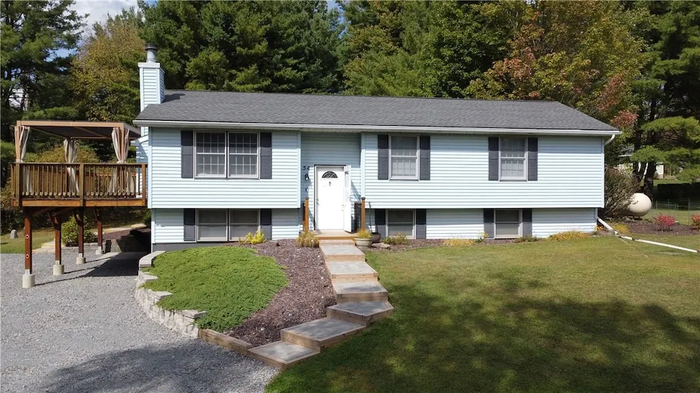 Welcome to this beautifully maintained split-level home, nestled in a peaceful, private setting in Danby, within the Ithaca School District. Set far back from the road on over an acre of land, this home offers a serene retreat with mature landscaping and plenty of space for relaxation and recreation. The home features 3 spacious bedrooms and 2 full baths. A cozy wood-burning fireplace in the living room adds warmth and charm, making it the perfect place to unwind. The downstairs provides space to spread out with a flex room, second living room or even a home theatre space. Step outside to the beautiful deck with a stunning pergola that conveys, a perfect spot for outdoor dining or simply enjoying the tranquil views of the neighboring pond. The private, expansive yard is ideal for gardening, play, or just taking in the natural beauty that surrounds you. With more than an acre of space, mature trees, and plenty of privacy, this home offers a peaceful and secluded lifestyle while only 5 minutes from Ithaca College and just a few minutes more to Downtown Ithaca. This charming home is the perfect blend of comfort, privacy, and natural beauty don t miss out on the opportunity to make it your own!