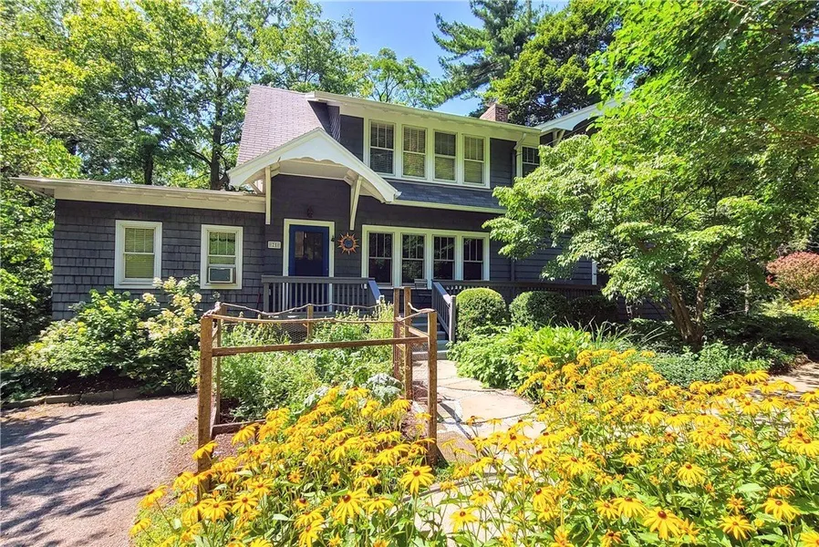 Elegant 1920s Arts and Crafts-style home offering stunning living space both inside and out. Ideally located on a quiet cul-de-sac within walking distance to Cayuga Heights, schools, parks, Ithaca Falls, the lake, and downtown Ithaca, this home combines modern amenities with vintage charm and character. Impressive, light-filled interiors boast gleaming hardwood floors, exposed beam ceilings, rich woodwork, and an open living area centered on a masonry wood-burning fireplace framed by graceful arched doorways. The custom-designed kitchen is a true chef's haven, blending beauty and function. Striking black marble countertops pair with a classic farmhouse sink and backlit glass-front cabinetry to create a warm, inviting workspace. Crisp subway tile with bold contrasting black grout beautifully complements the high-end Sub-Zero and Bosch appliances. Clever built-ins provide smart storage and organization, and a large west-facing window frames the afternoon sun. A spacious family room features large windows bringing in morning sun while overlooking the lush backyard. The main-floor guest suite is complete with a beautifully tiled shower trimmed in marble and access to a private deck. This space also functions as a main-level primary suite. Upstairs, the primary bedroom features cathedral ceilings, exposed brick, and a walk-in closet. The upstairs lounge with built-in bookshelves provides the perfect space for a home office, library, or den. A spacious 3rd bedroom, a versatile 4th bedroom or additional workspace, and a luxurious bathroom boasting a marble-tiled shower, rainfall showerhead, massage jets, tiled bench, and skylight complete the upper level. This home also features radiant in-floor heating, a full walkout basement for added living or shop space, and beautifully landscaped grounds with extensive gardens, patios, and stonework. Off the family room and kitchen, an expansive deck offers space to soak in the afternoon sun, host gatherings, grill, or relax beneath the glow of sunsets. Glimpses of Cayuga Lake can be seen from various vantage points. This exceptional home offers a rare combination of elegance, comfort, and accessibility. Turn-key condition!