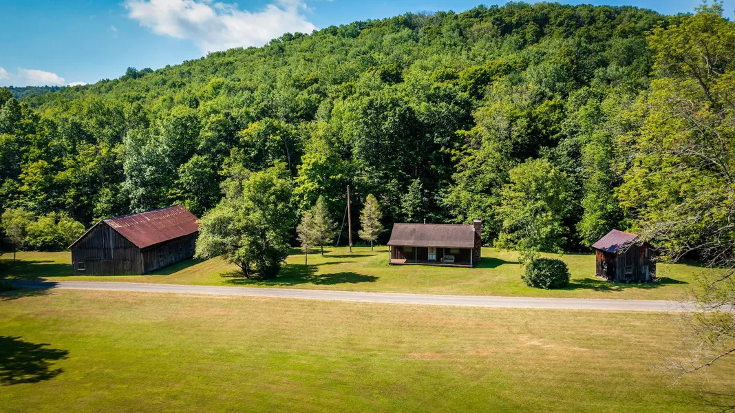 Arrive to admire this spacious grassland camp and disappear from the life’s hustle and bustle, while taking in the wide-ranging scenic views from several locations on this private property. From the deck of the rustic cabin, peer at the rolling hills with varied elevations. Behind the cabin sits a seasonal creek with a rock-bed bottom. Take a view from the higher elevation stand of a well-maintained half-acre bass-stocked pond situated among the valley retreat. The cabin features a fully furnished open floor living space to rest and refresh with family and friends. Rough-cut barn siding details the interior walls, doors and cabinets, all curated from the old stable that was on the property and repurposed to enhance the retreat’s rustic look and feel. The focal point fireplace allows for additional warmth and comfort on cold winter nights. On either side of the camp, you will find two sturdy and well-maintained 1850s barns presenting extensive storage options. Eastbound and up the hill, wind through the various wooded trails to find places to hike, hunt or use ATVs. Beyond the woods, there is a considerable amount of potential tillable acreage once planted with several different crops, including corn, hay and beans. Explore and find several different tree species and wild flowers blooming in spring, summer and fall. For the passionate hunter, this property allows for a vast number of locations to take a seat in a tree stand or blind for a rewarding pursuit. The ample acreage of this peaceful property with nearly 3,000 feet of road frontage allows for a wide range of recreation and seclusion to recharge and appreciate life. The maintained and plowed dead-end road allows for the camp to be accessible year-round. Located less than 30 minutes from Ithaca and 2 miles from Speedsville. Please contact us today to embark on the experiences that this property has to offer.