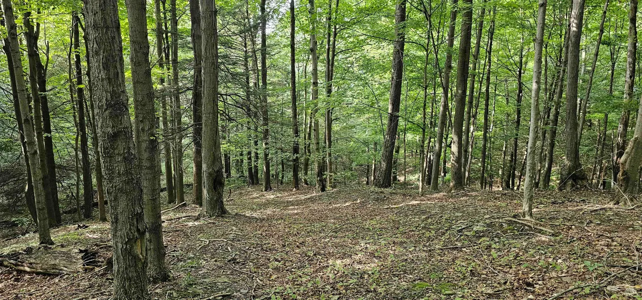 This property offers excellent habitat for deer and turkey with oak and hemlock groves spanning across the property. The highest elevation reaches 1,600 feet at the very top of the property and offers prime turkey habitat and incredible valley views. There are a couple of potential building sites at the northern end of the property with over 1,300 feet of road frontage along Ringwood Road which is a paved town-maintained road. Transversing the property are several old logging trails that could be utilized for ease of access. Near the top of the property is a plateau that is near level topography consisting of approximately 20 acres, and the remaining property consists of a wooded hillside. Very diverse landscape with a small gulley that seems to have hillside sp...